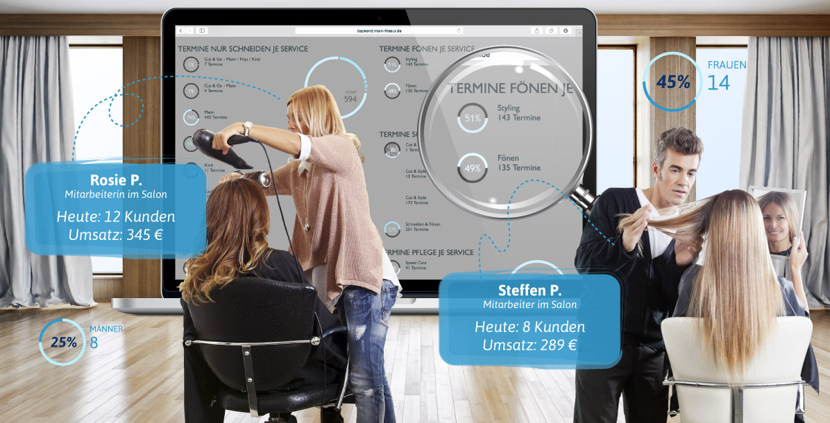 Unkomplizierte und übersichtliche Rückschlüsse auf sämtliche relevante Salonabläufe, wie z. B.: